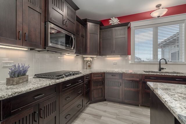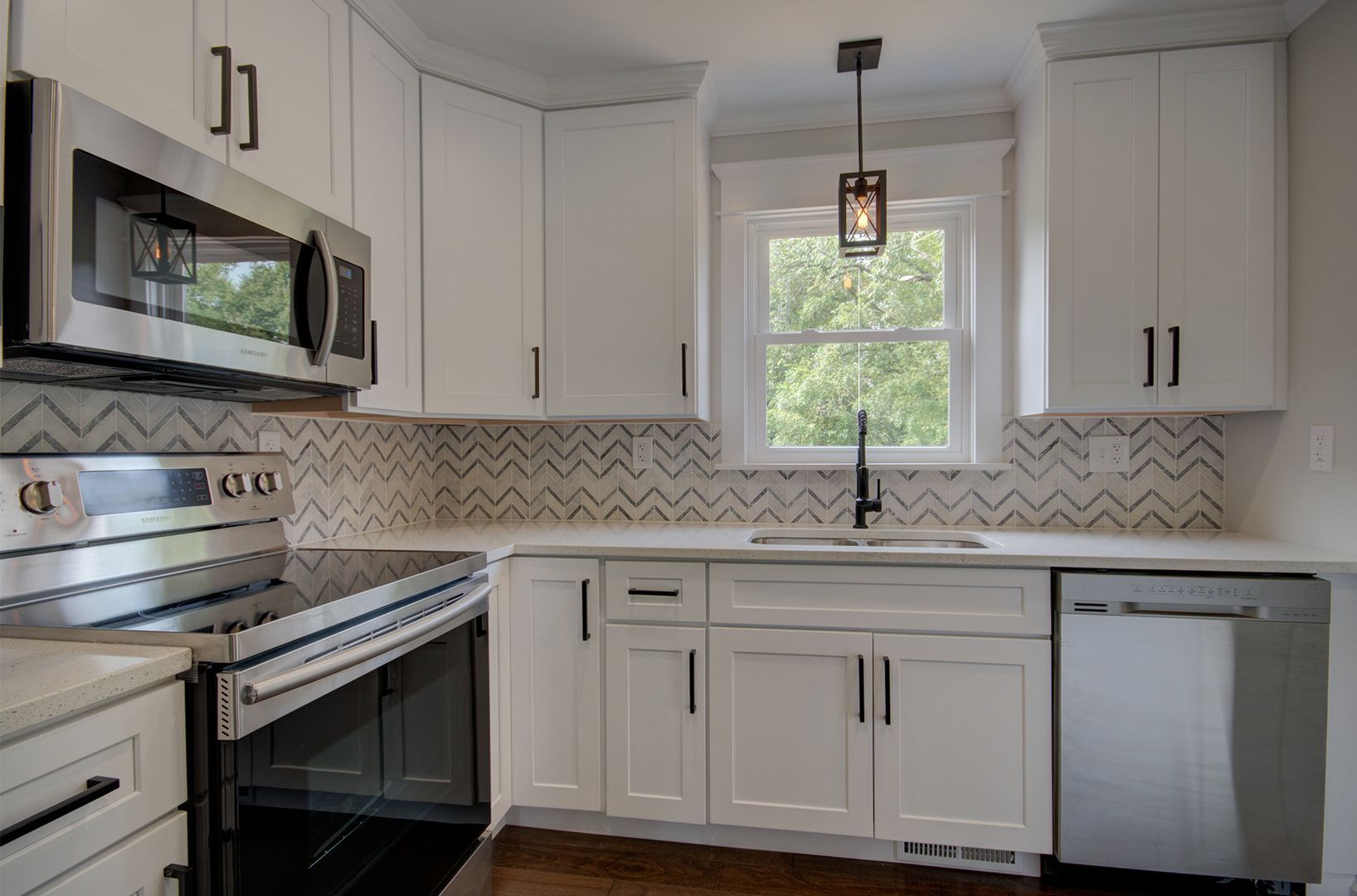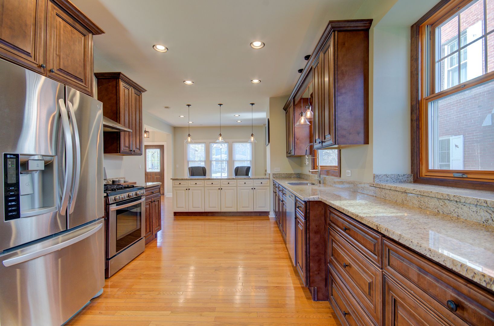 Darker stained wood, monochrome looks and marble seem to never go out of style when it comes to kitchens!